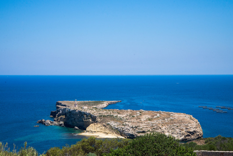 Ещё один короткий переезд с попыткой по дороге заехать на раскопки римских терм (неудачно - там глубокая реновация, и все огорожено забором и прикрыто тентами), и мы в бухте Жнейна (Gnejna). Здесь тоже пляж, но похуже, на горе стоит очередная башня (Lippija tower). По дороге ещё сделали пару фотографий собора в городке Мджарр. Интернет набрасывает, утверждая, что форма купола сего храма коррелирует с... яйцом, на деньги от торговли которыми якобы в основном и строилась эта церковь.