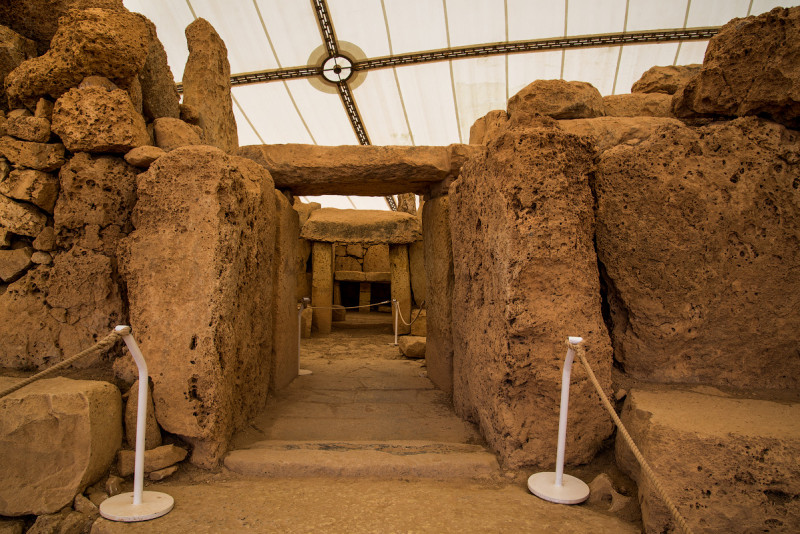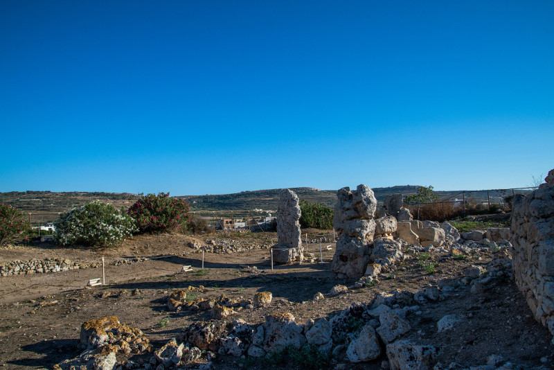 Ближе всего к парому из намеченного оказалась Гжантия (Ggantija), остатки мегалитического храма возрастом под 5500 лет. Я поначалу думал, что это такая же какашка, как и Скорба в первый день, но просмотр фотографий убедил в обратном. Сайт включён в список мирового наследия ЮНЕСКО, соответственно, попадает под всяческие программы и т.д., в связи с чем выглядит ухоженно и располагает небольшим собственным музеем. Жена почему-то не прониклась древностью, а ушла в убеждении, что все это мистификация, камни складывали экскаватором, и вообще - сплошной развод кроликов. Впрочем, плиты песчаника в основании храма весят десятки тонн, и их перемещение к месту строительства с помощью каменных же катков (выставлены в музее) представляет собой сложную задачу.