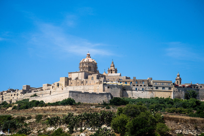 Поскольку времени ещё вполне хватало, чтобы посетить Мдину, переместились туда. Вид на мощные стены открывается издали, старый город расположен на довольно высоком холме, с которого открывается вид на две трети Мальты.