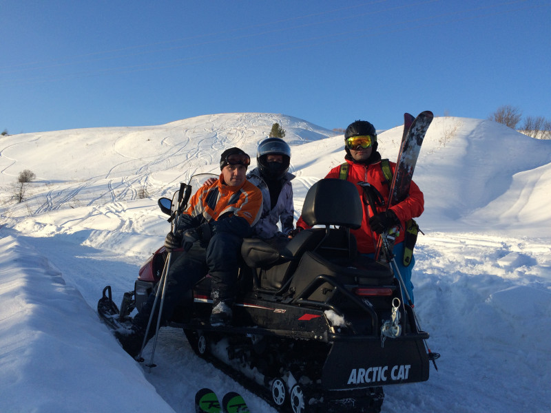 если цель попробовать целину, то не обязательно за снегоходом.)) с лыжами на любой хардкорный склон.