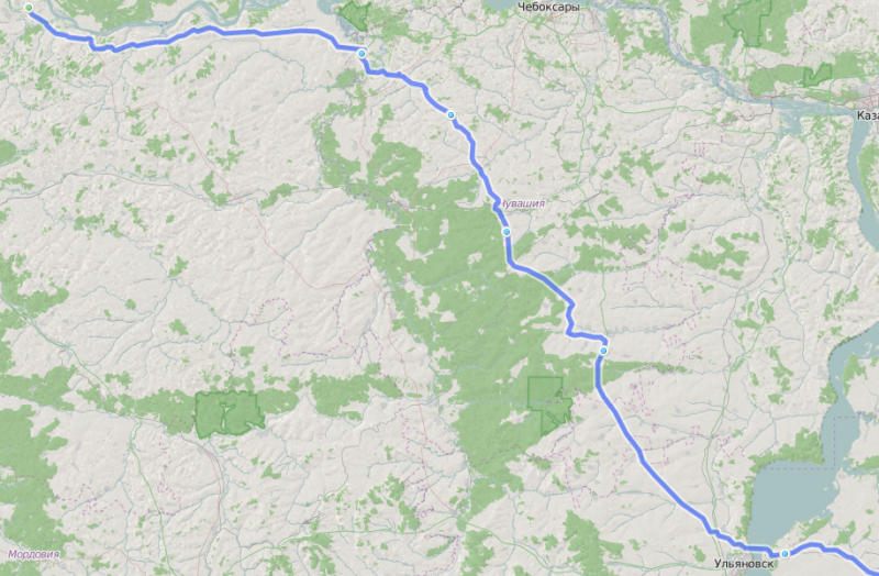 НН - Ядрин - Аликово - Калинино - Вурнары - Ибреси - Батырево - Ульяновск - Самара