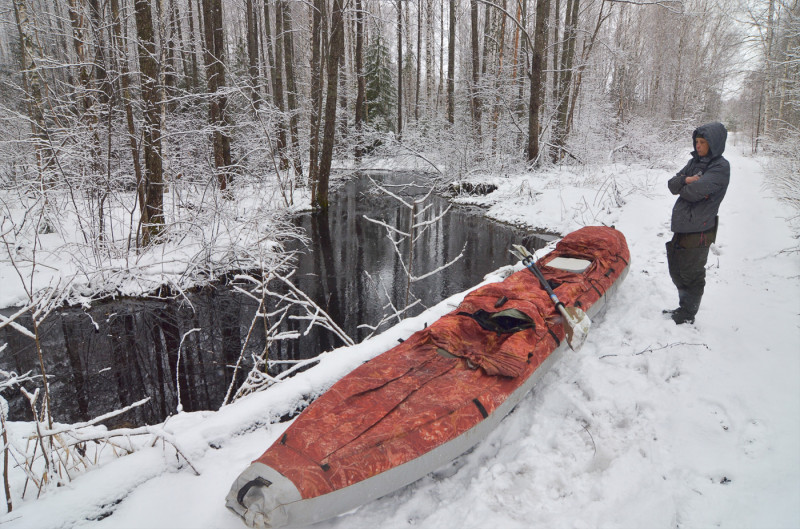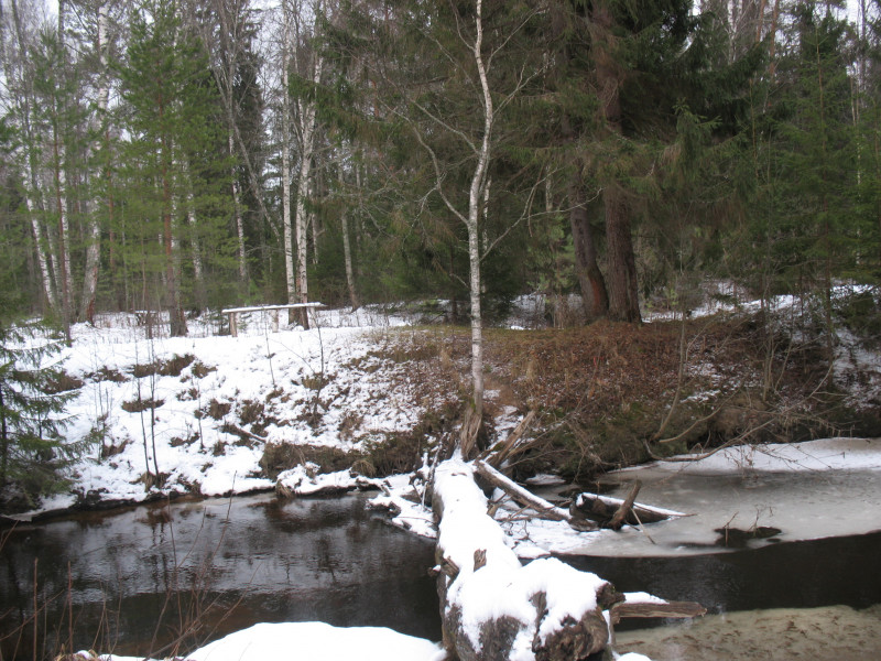 В итоге сходили на Одинцовский скит с Димой Карповым. Боброплотина на месте, находится сразу за мостом через Алсму, тем что у скита. Вода соответственно стоит высоко, почти вровень с мостом. Обнаружили бобровую хатку. Поскольку бобропруд основательно замерз, вокруг хатки можно хороводы водить. На ските наметились некие подвижки, построен простейший фигвам, припасены кое-какие лесоматериалы, заготовлен сруб колодезного калибра. Видимо дело всеж-таки не заглохло. Далее у нас все шло все примерно по плану, с двумя перекусами и одним костром пришли в Медведево к 15:30. Уже традиционно проводили взглядом медведевский автобус 15:45, который внезапно отчалил в 15:28. Также традиционно через 10 минут уехали на Хахальском. Погода весь день отличная, с утра было вообще ясно, застали красивейший восход солнца. Дождя так и не было. Использовали весь световой день от и до, но по темноте не ходили. Рекомендую маршрут для ленивого фитнеса с элементами краеведения и натурализма (не путать с натуризмом 8-))