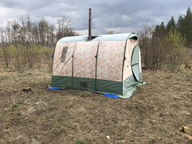 Также думал, покупать палатку-баню сначала, потом решил пленкой обойтись. Физику не обманешь, главное объем/масса камней, основная проблема - камни, каркас из веток собрать и обмотать - не проблема. Печки к походным баням мелкие какие-то и дорогие, не верю в них.