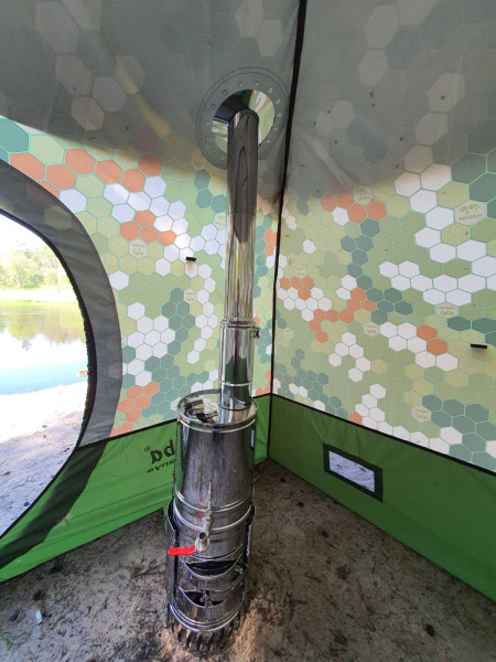 Поздравляю со вступлением в ряды мобибийцев ) Тоже с весны юзаю Кайфандру- 5, ещё есть Кайфандра- 1 и МБ- 10 с Медианой. У К-5 другой пароперегреватель, пар более сухой по сравнению с К-1. Кайфандра в байдарочном походе- вещь! Прошлой весной вымокли под снегом, потом вчетвером хорошо прогрелись, ещё и купались, совершенно новый уровень комфорта, и 12 литров горячей воды всегда в наличии. Желательно прикупить или самому сделать тёплый пол- весит и места занимает немного, а температуру сильно добавляет. Топливо- желательно брикеты RUF (берёзовые), если на подножном топливе- доп. сегмент дымохода, для лучшей тяги. При сборке каркаса желательно использовать силиконку- может закусывать соединения. Брать лучше у нашего нижегородского дилера- не надо платить за доставку (из Новосибирска), не всё всегда в наличии, но раз в 3 недели обычно привоз, могут и скидку небольшую сделать.