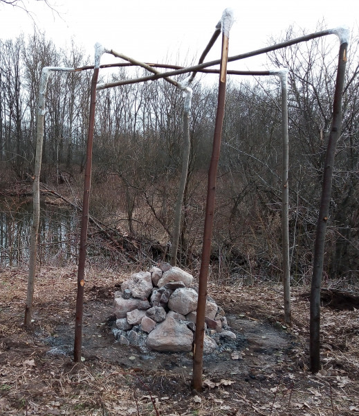 Мы обычно жжем костер с каменкой, а потом накрываем палаткой/тентом.