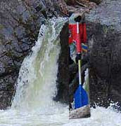 Точка съёмки метра на 3-4 выше уровня воды под сливом, т.ч. тут не всё так однозначно. Опять же, если взять линейку и поискать вертикальные объекты, то перепад высоты по левому (орографически) камню примерно равен высоте сидящего в упорах левого гребца (от каски до колен). Что, в общем, всё равно меньше полутора метров.