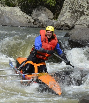 воды было побольше, слив стал поположе и, следовательно, двойка там легко убралась, а если ракурс взят снизу (а если ещё и чуть сверху вниз) по течению то пологость слива не видна, вот и кажется что катамаран длиною более 4-х метров находится вертикально, следовательно - ужос-ужос водный перед нами...