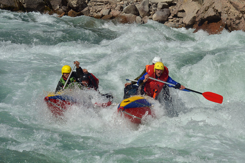 Пены там - достаточно, при особой удаче лодочка вертикально уходит под воду полностью. Тем не менее, к видимым 5 метрам никто ещё 4 не добавляет, и не называет препятствие 9-метровым водопадом.