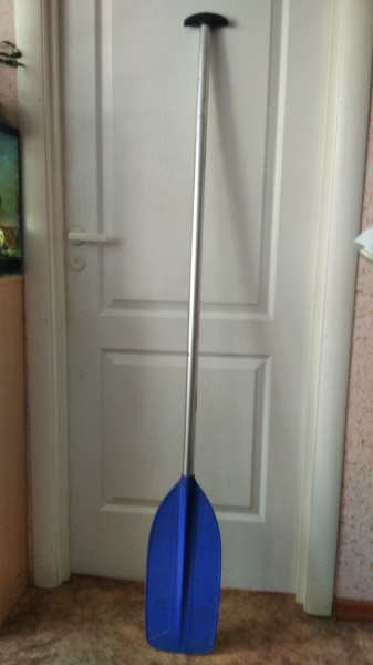 Весло было найдено на Тумче ломаное у самой лопаты. Было длиной 175. После обрезки ломаной части и вклейки стало длиной 163 см.