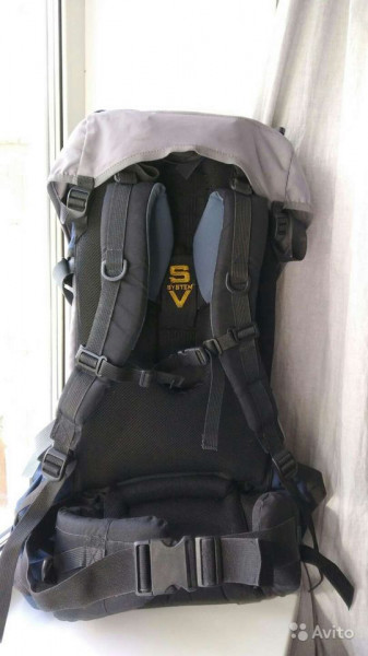 Рюкзак оснащен SV- системой, т.е.лямки подгоняются под человека, внутри алюминиевые латы для жесткости конструкции, набедренный пояс съемный. Вес рюкзака 2,6 кг.