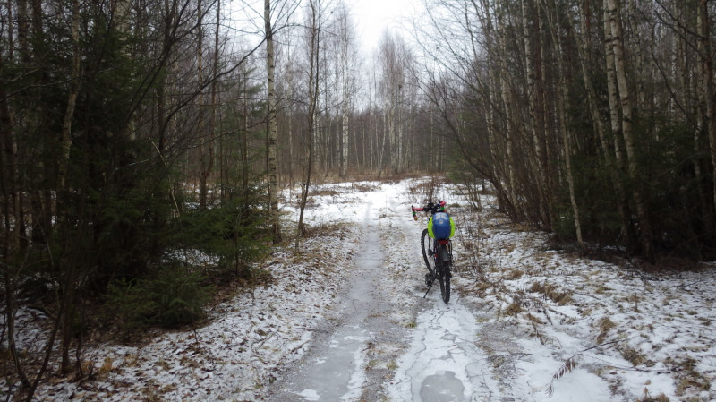 Вот таким путем открыл свой сезон на лисапеде. Он там, где то в снегу.