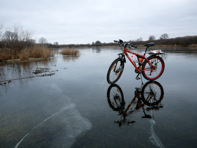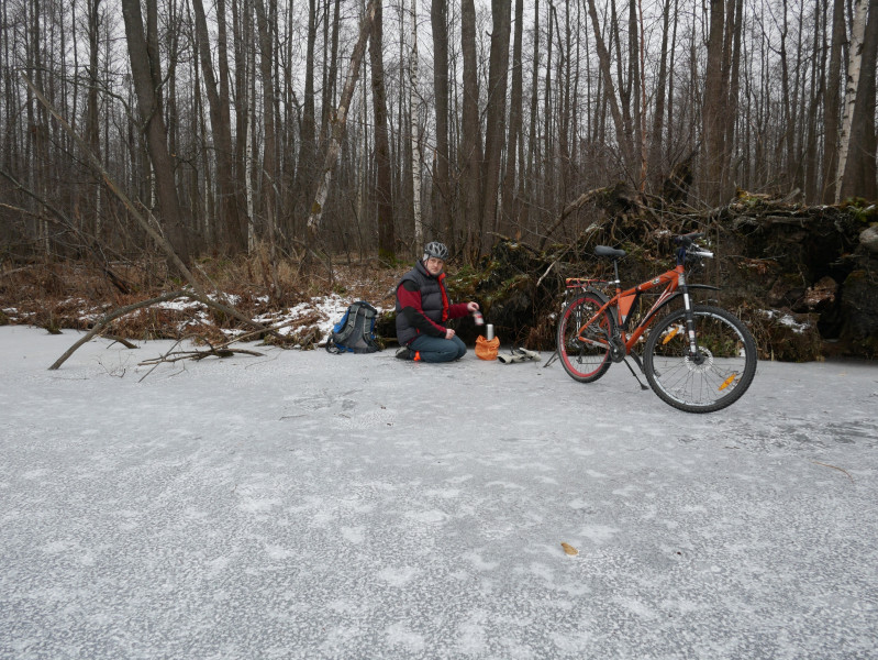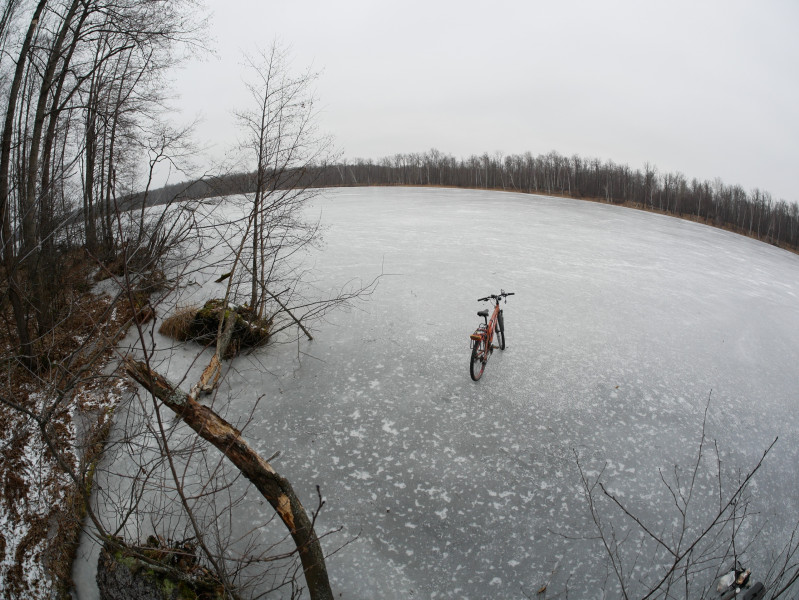 К утру подморозило до -9, днём -5, обещали солнце, и я поехал покататься на велике.