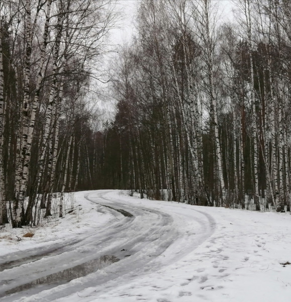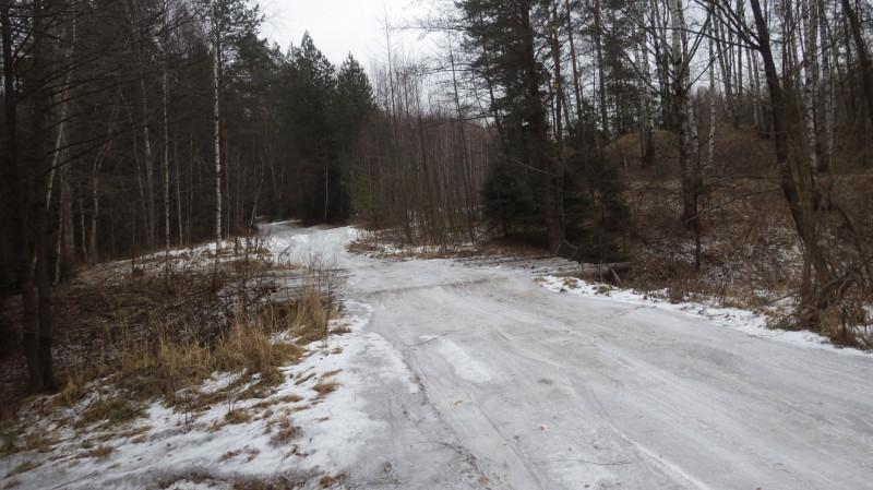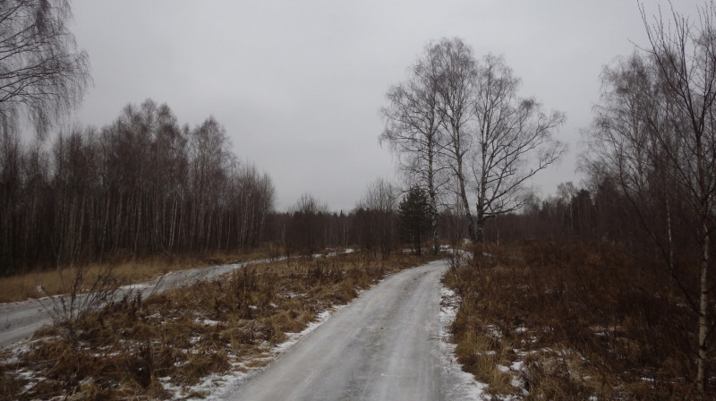 Поставил шиповку, ибо дороги превратились в лёд после последнего дождя, и хотя вглубине леса всё равно не потаяло и лежит тонкий слой снега, но по дорогам ездили машины и воду раскатали, затем это замёрзло и проявилась волшебная замороженная сказка. Без шиповки я бы не тронулся и с места.
