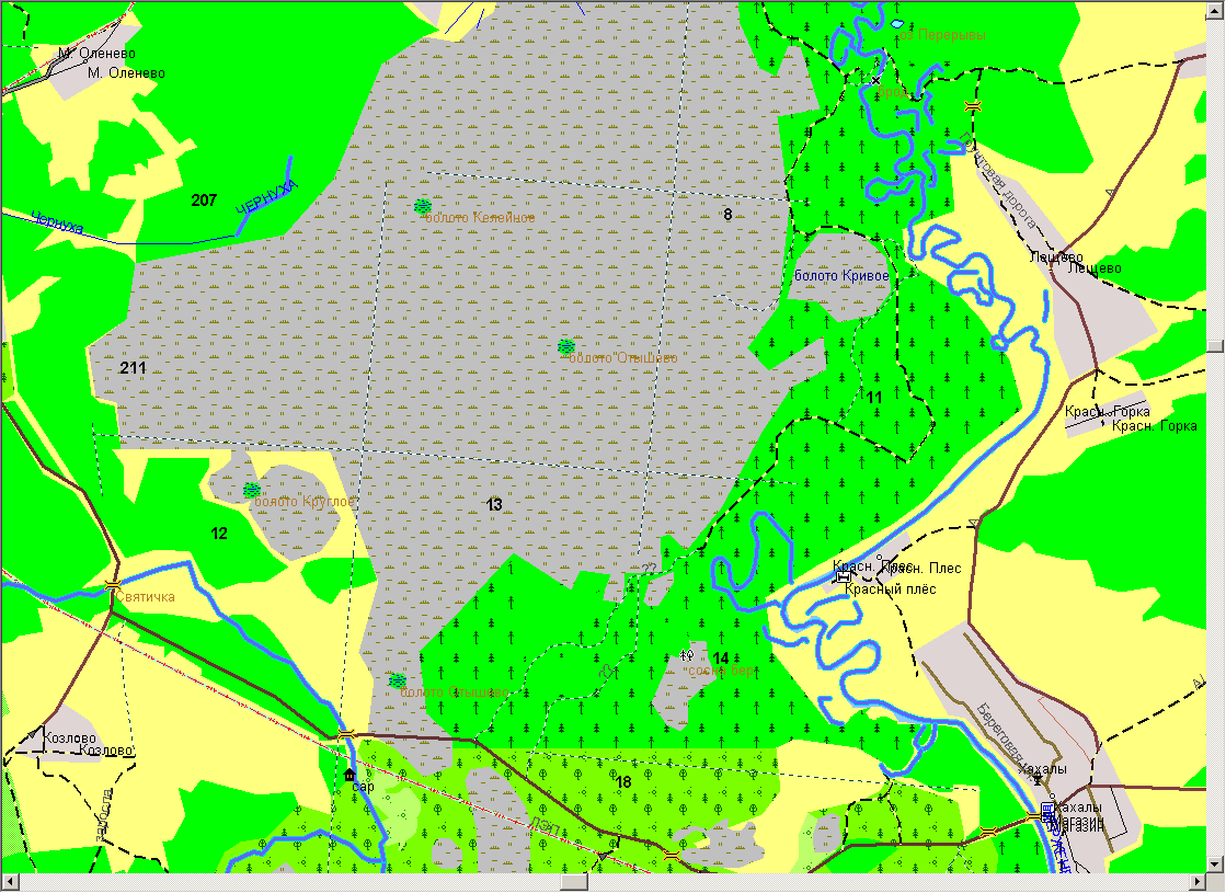 Ездили там осенью прошлого года. Между болотами и Керженцем песков вообще нет. Мокрые места есть. Завалы были. (О текущем состоянии завалов Алексей лучше сообщит последние сведения...).