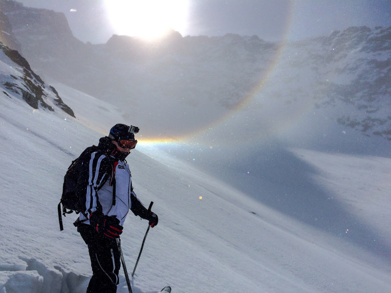 На фото и видео - единственная попытка фрирайдной вылазки. Полная хрень, только круговая двойная радуга порадовала :-)