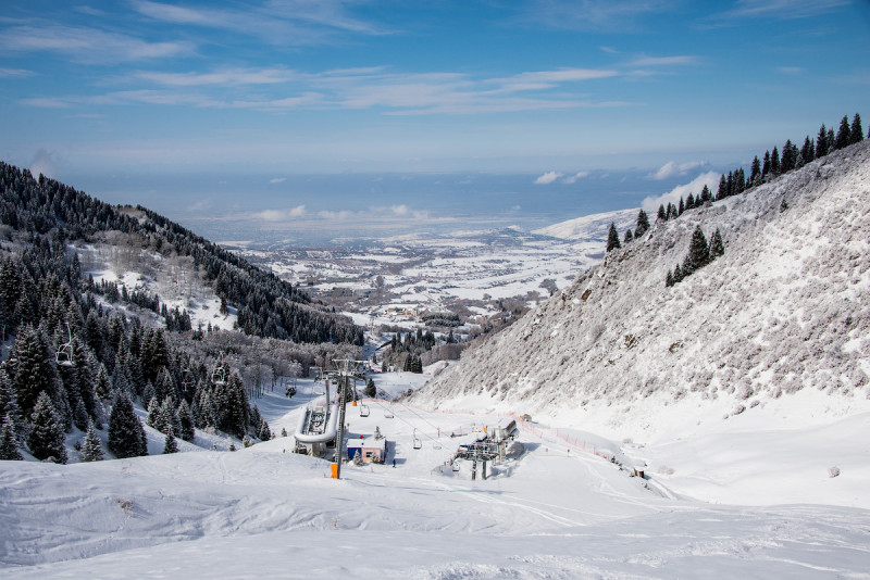 Потенциал у курорта тоже огромен, это видно невооружённым глазом. Можно тянуть подъёмники и на обратку, и с другой стороны хребта слева от креселки, было бы желание. При этом трассы находятся либо на дне ущелья, либо на склонах, куда солнце вообще не попадает, и снег должен тут лежать долго. Сочетание великолепной погоды и пухляка однозначно сделало этот день одним из лучших за сезон.