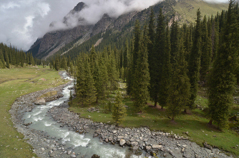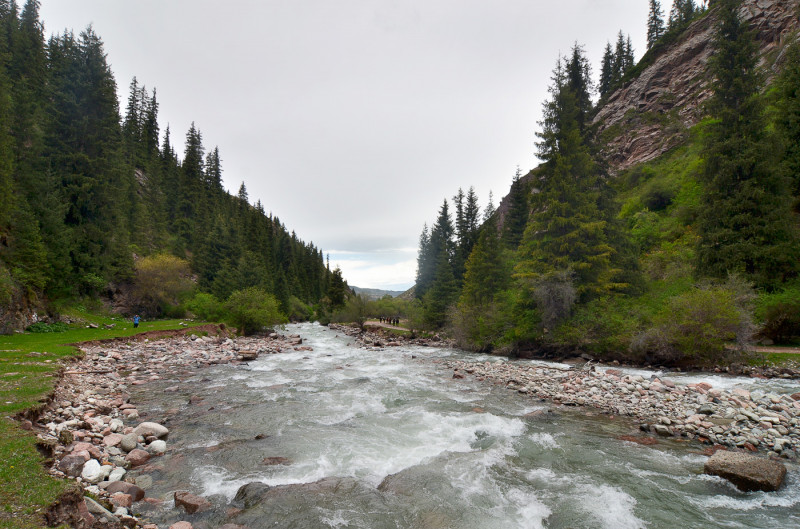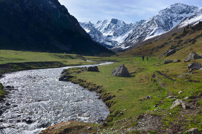 Ущелье пользуется популярностью круглый год: зимой - благодаря расположенной в его нижней части горнолыжной базе "Каракол", летом - благодаря альплагерю, откуда проложено множество альпинистских маршрутов на окрестные вершины и перевалы (зимой тут, впрочем, тоже бывают гости - фрирайдеры), в межсезонье же - в основном, благодаря простым туристам-пешеходникам, типа нас, любителям несложного треккинга. Благо, до Каракола из Бишкека ходит недорогой рейсовый автобус, а вверх по ущелью можно подняться и пешочком.