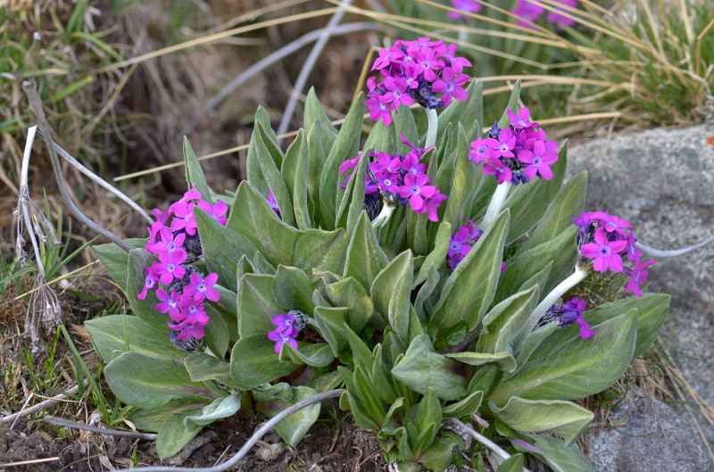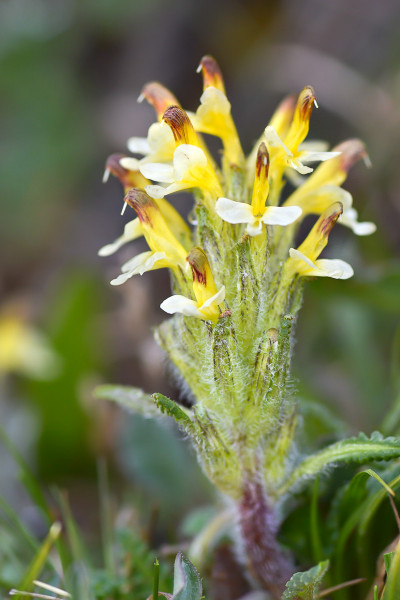 Набрав метров двести, и уперевшись в скальные сбросы и низкую облачность, решил спускаться назад. Всмотревшись в противоположный склон, я наконец разглядел крохотные едва движущиеся точки - наши герои уже возвращались с плато (как позже выяснилось, до перевала они так и не дошли) и собирались спускаться по снежнику. А это значит, пора и мне поторапливаться. Сняв еще парочку снеголюбивых цветочков, я приступил к спуску, и через полчаса уже снимал гамаши на кустарниковом склоне, заодно немного перекусив и пофоткав мытники. В это время прибыли и остальные. Узнав, что мы уже прилично опаздываем, они перешли практически на бег, и я снова оказался в роли догоняющего