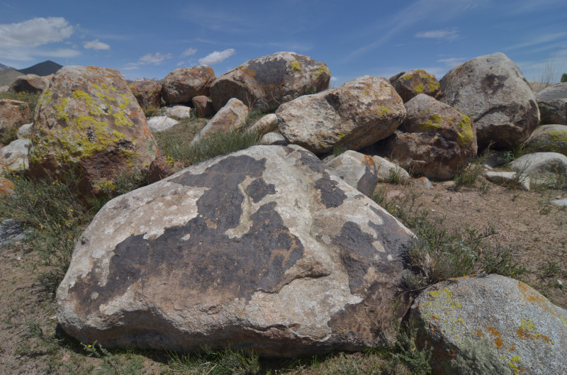 Обширная россыпь замшелых крупногалечных камней в горной степи под открытым небом. На некоторых из них при ближайшем рассмотрении угадывается что-то отдаленно напоминающее наскальные рисунки. Но сильно отдаленно. Местность довольно красивая, на камнях сидят забавные птички. Вся территория огорожена, вход платный (примерно 50 сом с человека, но большой группе можно договориться и подешевле).