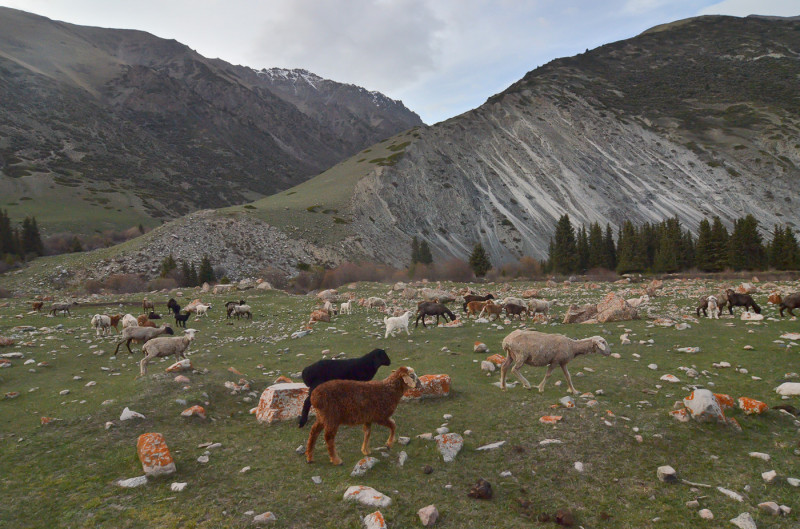 Еще пару слов к вопросу о еде. Столь полюбившиеся нам в прошлый визит местный кумыс (по-киргизски кымыз) и иссык-кульский чебачок (это такая мелкая промысловая рыбешка, эндемик Иссык-Куля) в этот раз отведать не удалось. Для кумыса еще слишком рано (его начинают делать ближе к июлю), а с чебачком вот какая история приключилась. В Прииссыккулье имеется ряд рыбоводческих хозяйств, занимающихся разведением форели (рыба эта не местная), и вот пару-тройку лет назад то ли из-за сильного шторма, то ли из-за сильного дождевого паводка часть этих запруд разрушилась, и большая партия форели попала в Иссык-Куль. Будучи хищницей, форель довольно быстро подвыбила чебачка, и его вылов нынче не производится. На восстановление потребуется несколько лет...