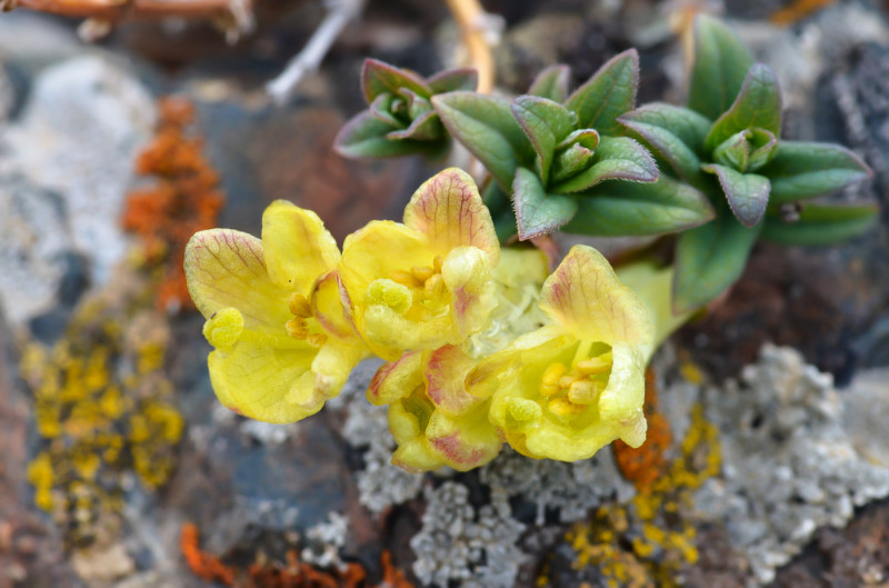 Незадолго до финиша меня конкретно тормознула местная флора, среди которой наблюдались как уже хорошо знакомые нам представители тяньшанского высокогорья - Первоцвет туркестанский, Селезеночник голостебельный, Хориспора бунге, Красивоцвет алатавский - так и новые для нас виды - Лук Семёнова (изначально, в отсутствие цветков, принятый нами за нарцисс), подушковидная Сиббальдия четырёхтычинковая (а эту я грешным делом принял за цветущий Тилакоспермум дернистый, чему весьма обрадовался) и очередной неопределенный пока цветочек, снова желтый (почему-то проблемы чаще всего именно с этим цветом возникают) - так и придется идти за помощью к спецам на Плантариум. В общем, на седловину я выбрался уже последним ))