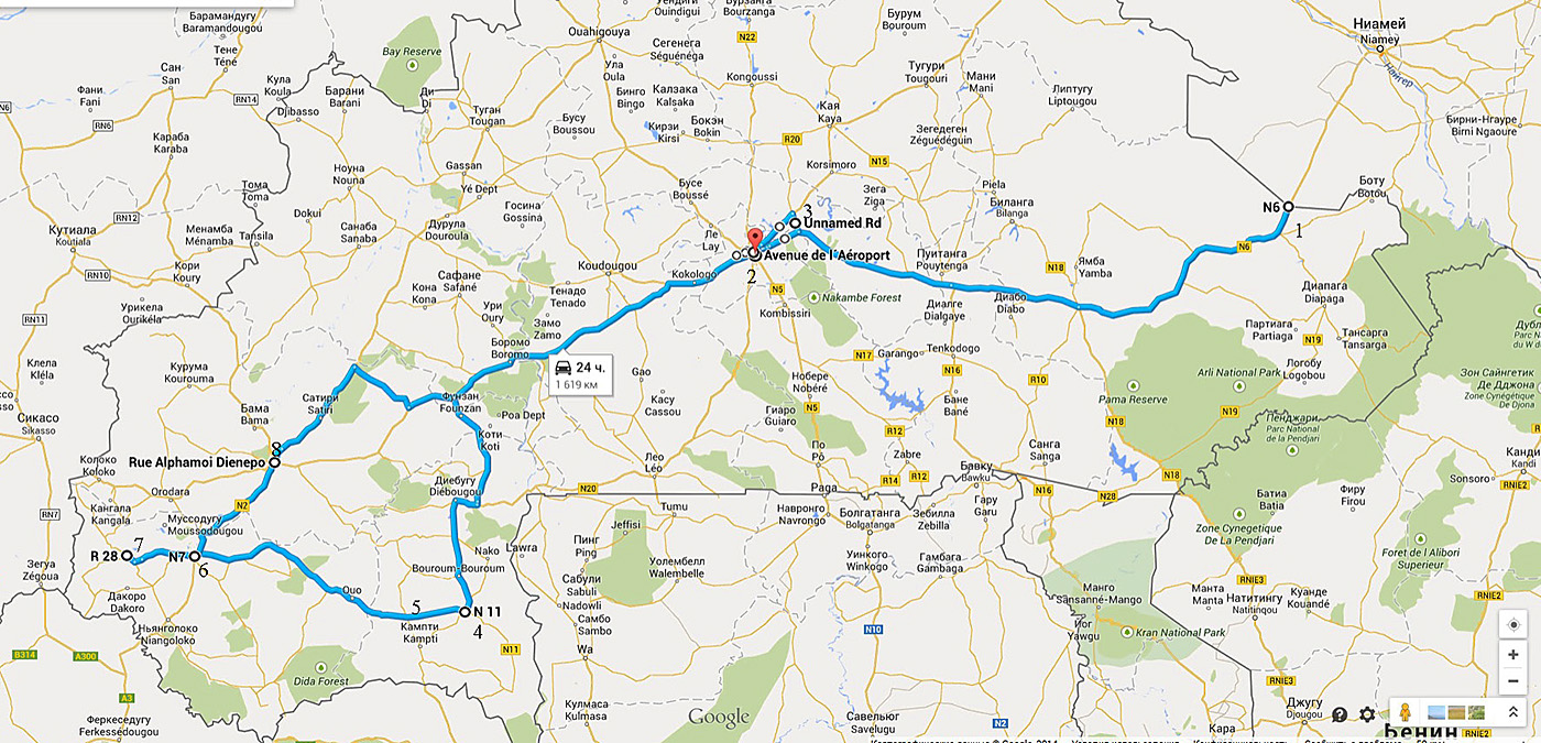 Уага встретила вечерними пробками, а ещё где-то пробили колесо. Пришлось остановиться прямо на круговом движении и выгрузить весь наш багаж, чтобы достать запаску. Очень кстати на моцике подкатил приятель Идриссы со своей тёлкой, привёз диски с местной музыкой для Лины. На пару колесо они поменяли весьма споро. Потом заехали ещё к одному приятелю, у которого Идрисса по моей просьбе (для коллекции дочери) раздобыл небольшие государственные флажки БФ. И за музыку, и за флаги денег он с нас не взял, респект и + ещё немного к чаевым. Затем покружили по городу в поисках отеля для Ильи, который оставался ещё на 2 ночи. Лонька не всегда была адекватна и поначалу привела в жуткие трущобы, Илью совсем не возбудившие. Наконец, кров был найден, мы попрощались и поехали покушать. Напоследок разразился сильнейший ливень, слегка подмокнув, поели, купили ещё сувениров, сливая остатки сэфа, самые остатки продали барыгам возле аэропорта, а самые-самые остатки вместе с чаевыми в евро отдали Идриссе, прощаясь с ним в аэропорту. Идрисса однозначно получает зачёт как дружелюбный, адекватный водитель и гид. Смело рекомендую. Уверен, что знай мы французский, путешествие стало бы ещё намного интереснее...