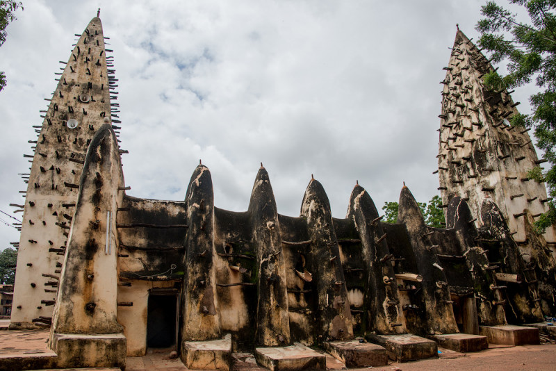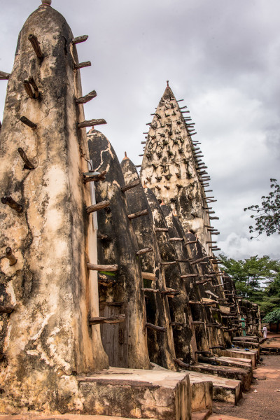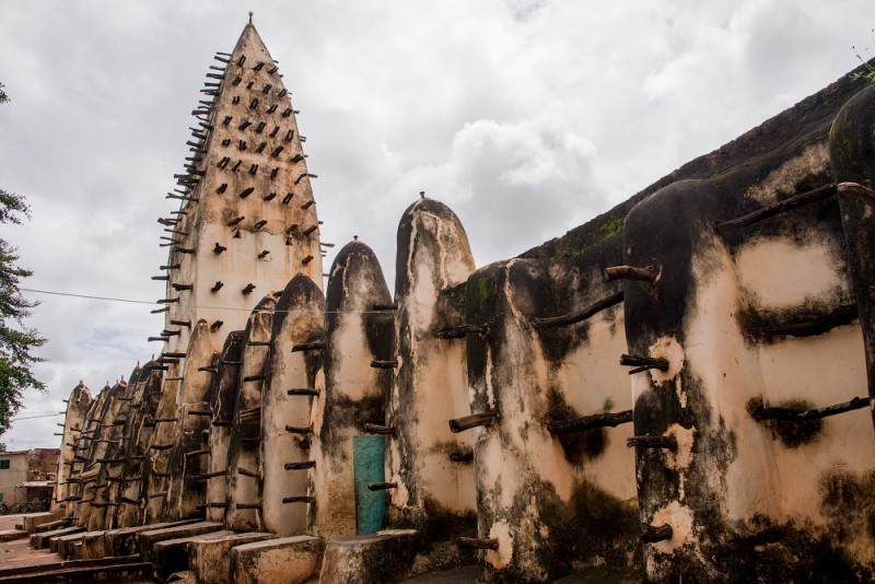 Через полтора часа начинаю нервничать - еще немного, и надо начинать искать альтернативный способ перемещения в столицу, но тут, слава богу, наконец появляется Идрисса. Смотрит виновато, но доволен, видать, тормоза отремонтировал. Так и есть. Для начала доехали до большой мечети. Такая конструкция распространена в Африке, и в принципе здешняя мечеть устроена похоже с агадесской.