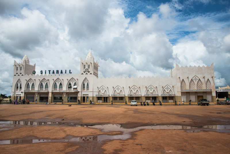 Потом в достаточно плотном трафике подъезжаем к самому приличному зданию в городе - ж/д вокзалу. Мы с Линой ограничиваемся фотографированием из машины, Илья, как обычно, предпринимает углублённое исследование.