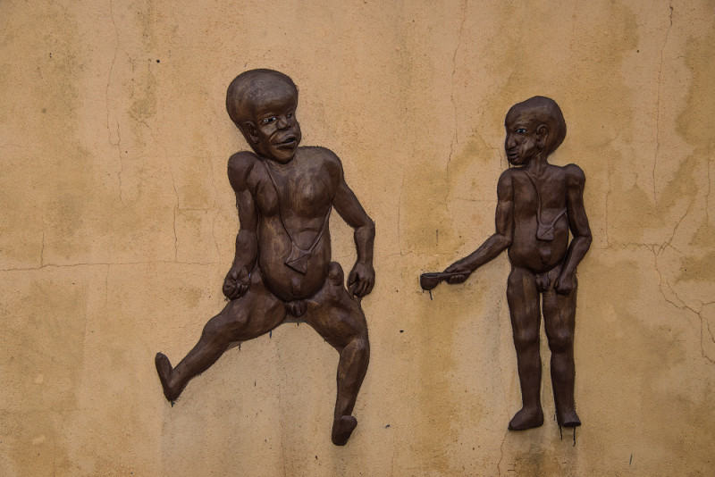 Единственное, что там заслуживает внимания - это забор с забавной лепниной на темы африканского быта. Забор длинный, для существующего здания явно великоват, так что, возможно, в перспективе музей ждёт глобальное расширение площадей. Илья опять выступил как самый дотошный исследователь - не поленился обойти весь забор по периметру и задокументировать все (!) миниатюры.