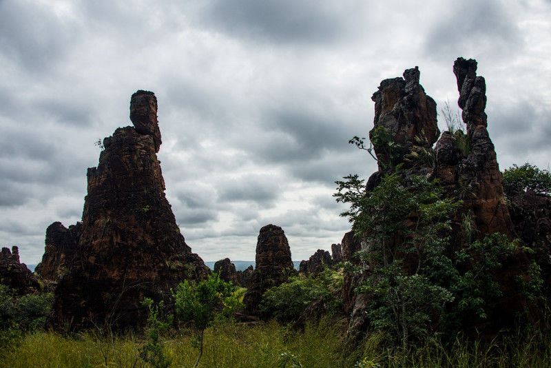 Доехали быстро, и снова мы в осадке. Место обалденное! И спереди, и сзади расстилается равнина, и абсолютно непонятно, откуда здесь взялась цепь скал, похожих на торчащие из челюсти гнилые зубы. Постепенно по бокам она сходит на нет, превращаясь в отдельные невысокие утесы.