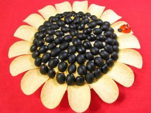 Я украсила салат "Божьей коровкой", сделанной из половинки помидорки черри.