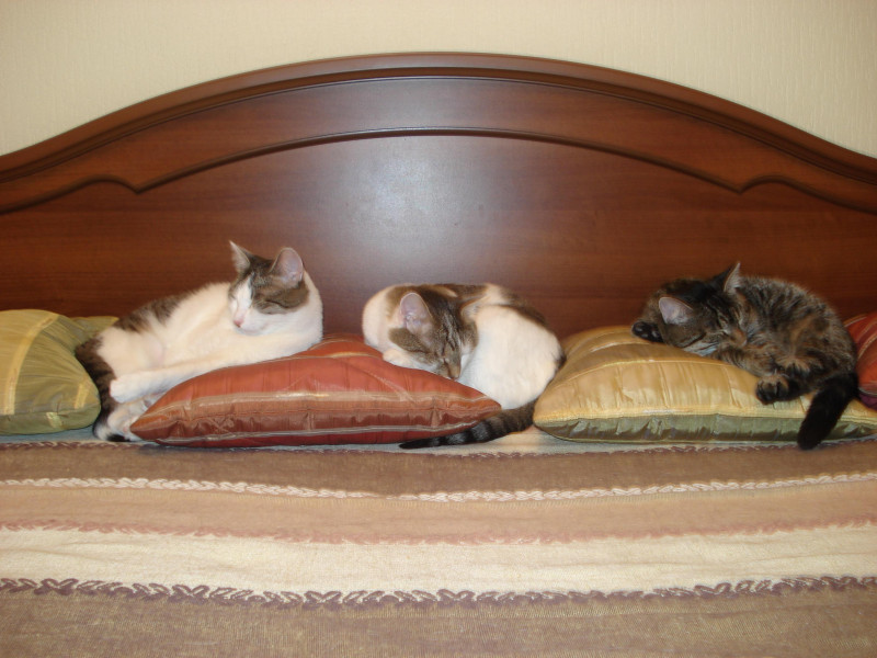Не всегда значит третий кошкин (тот, что слева) у Вас под кроватью спит! Иногда ему и роскошная кровать с подушкой достается!