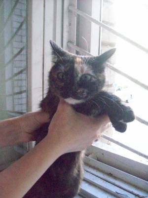 Кошечка Алиса, 1 год, черепаховый окрас черно-бурый с рыжими вкраплениями, гладкошерстная. Кошечка очень сообразительная, чистоплотная, приучена к лотку, ест все и прекрасно уживается с другими животными. Стерилизована. Кошечка была прежде домашней. Хозяева не углядели за ней и она пропала. Появилась через какое-то время и естественно с приплодом. Хозяева выпустили ее на вольные хлеба, Алиса спустя какое-то время окотилась в подвале. Местные подкармливали ее и котят. Потом кошечку взяла на передержку девушка, живущая в этом доме, стерилизовала ее. Кроме Алисы у девушки еще 3 кошки и 1 кот (свои). Прижилась Алиса с ними быстро и почти без проблем. Котят было 3. Одного сразу как-то забрали, как только Алиска начала их выводить. еще одного котенка мы пристроили, а третий пропал. Давайте поможем Оксане (девушке, у которой сейчас Алиса живет) найти побыстрее Алисе дом и любящих хозяев, т.к. 5 взрослых кошек в одной комнате это как-то уж через чур.