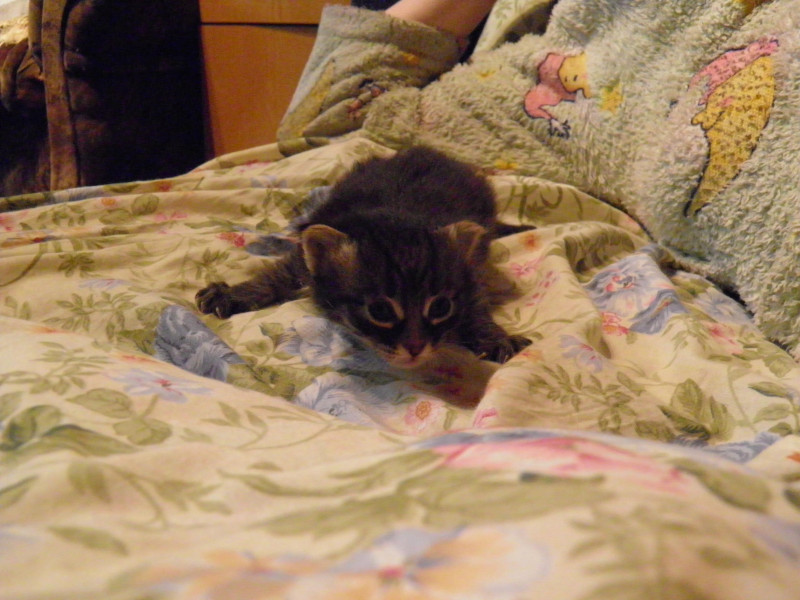 А потом стала вылизывать. Помутнение рассудка у нее было только первые 5 минут. Шок от родов, наверное, сказывается. Может спрятать хочет. Я за кошкой слежу, чтобы не задавила котят. Она их хочет спрятать от нас и ложится на котят.