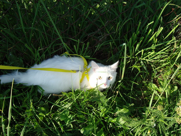 я своему куплю шлейку, если решим этим летом, когда ему будет год, везти в деревню. А так в городе только в переноске гуляет. Боюсь, вдруг собака нападет или еще что...