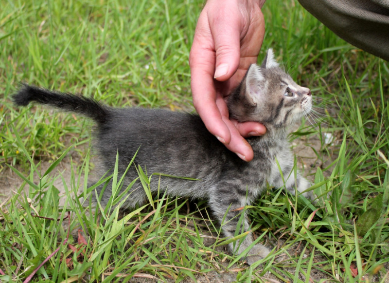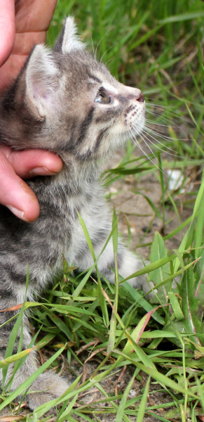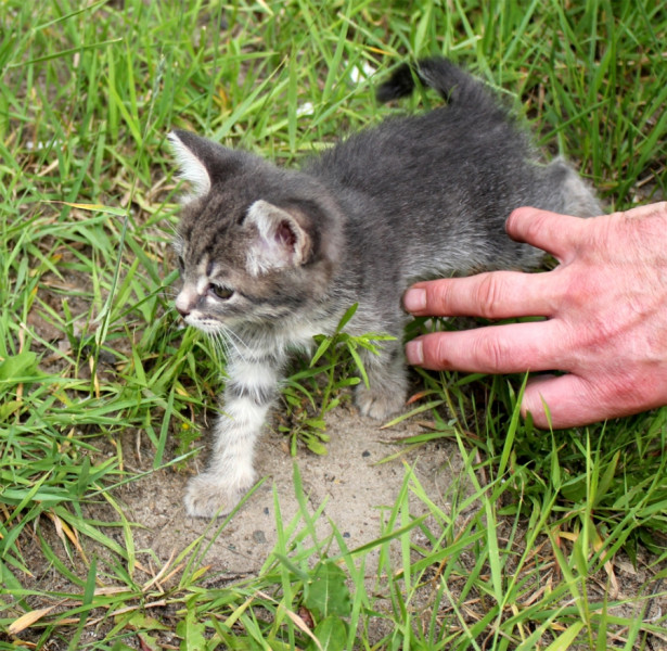 котёнок-малыш. Даже если он не приспособлен, это самое время его приучить. Не возвращать же котёнка из-за лужи.