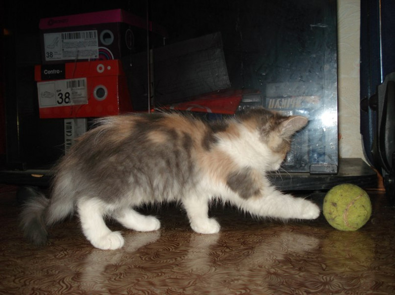 кто принес и оставил в садах маленькую беззащитную крошку-неизвестно,крошка бегала за каждым прохожим и плакала,просила помощи,а все проходили мимо,малышка даже ела хлеб и рычала,когда пытались положить еще еду,она пыталась войти в дом,ее не пускали,выпихивали и как итог ей сломали хвостик,но это ей ей мешает,она его чувствует,он просто загнут, малышке всего 1,5 месяца,сейчас она на передержке,обработана от всего,такая ласкуша,с рук бы не слазила,лоток сразу нашла,кушает все,ждет своего самого лучшего хозяина. 89290416861,Посмотрите на малышку возможно вы ищите именно такую