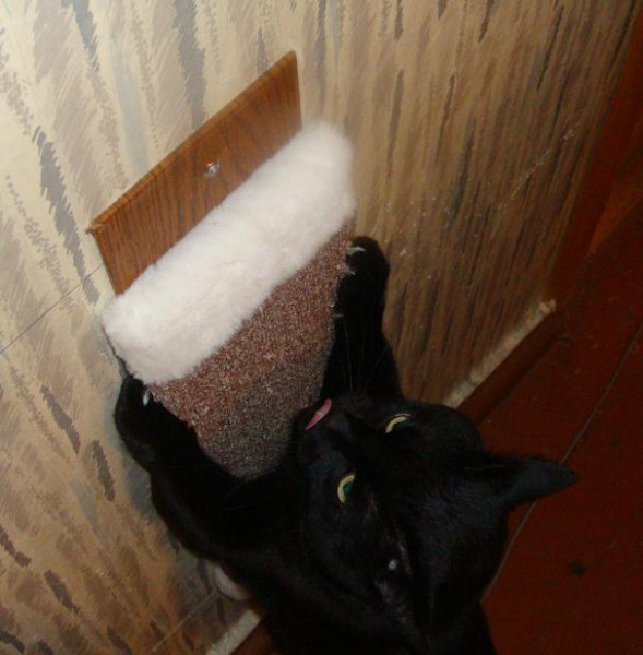 Такая когтеточка плоха тем, что обои по-близости страдают. Примерно как на вашем фото((