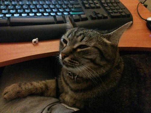 Спасибо за добрые слова! Одно из любимых мест лежания Арчика - место со мной рядом в кресле перед компьютером, выглядит это так :)