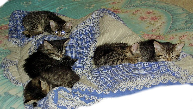 Вот фото, сделано недавно, когда еще не отдали котят. Когда из было еще пятеро.