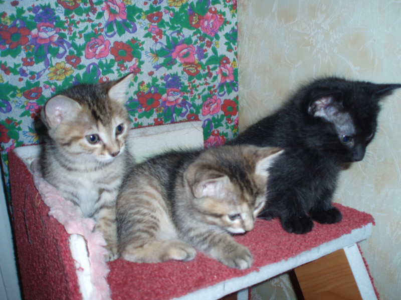 У меня есть чёрный короткошерстный котёнок курильского бобтейла, но без манишки. На сколько мне известно - в городе такой он один. Возраст 2 мес., зовут Варяг ( Гармония Курил ). Фото прилагаются. Отличная порода, недовольных ещё не встречала.