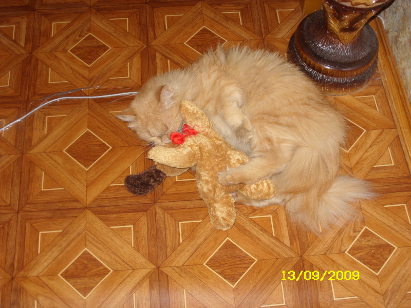 Помимо того, что мы сосем свою лапу, у нас есть любимая игрушка, которую Зосько также сосет. А еще у нее привычка таскать эти мягкие игрушки, независимо от размера из комнаты в комнату...забавное зрелище.