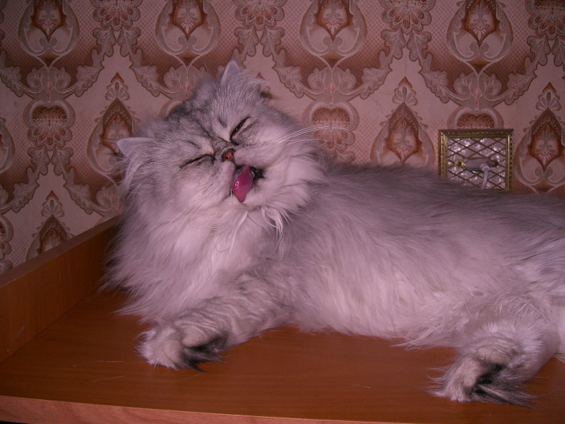 Спит то она только у меня на подушке, если ее отодвигаешь, с упорством идет обратно...