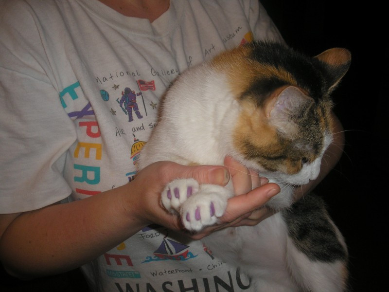 они у неё и так замечательные, а вот постоянных нет желающих на хромую и по человечески умную кошку, она по моему только говорить не научилась за это время...