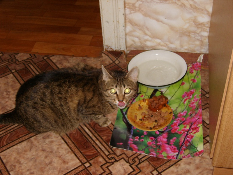 А во время кормления он "прям голодный-голодный", "дайте прям сейчас, а то я уже умираю". Падает рядом с мисками на спину, лапки вверх задирает, глазки закатывает и типа умер - голодом заморили)))