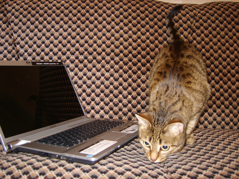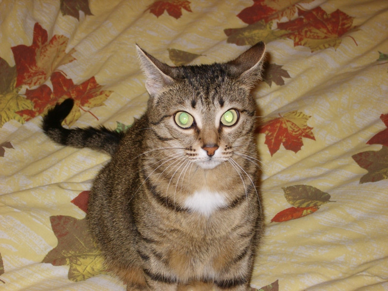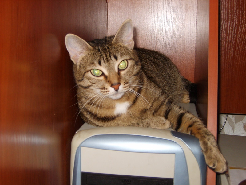 И взгляд такой, ну прямо упади и зарыдай от горя:) А пузо, между тем, скоро по полу будет волочиться. Я ее теперь ограничиваю в еде, а то с утра раза 3 поест, вечером раз 5 (ну не по целой миске, конечно, но все равно, для кошки, живущей дома на диване - это слишком).