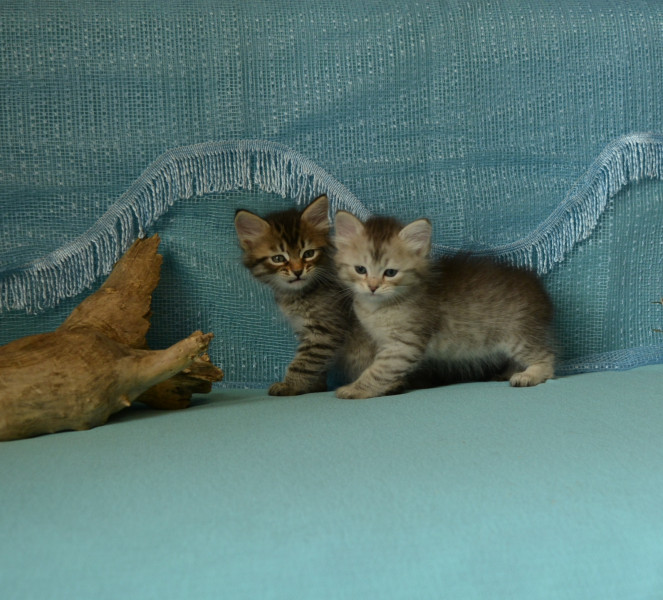 У Амулета есть и еще котята от Майи Сибериус. Трое, два традика с белыми лапками и невачок-блю-теббик. Они на неделю моложе моих.