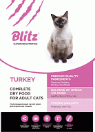 Blitz с мясом индейки специально создан для взрослых кошек всех пород и порадует питомцев даже с самым придирчивым вкусом. Корм обеспечивает жизненные потребности взрослой кошки, их крепкое здоровье и отличный внешний вид, способствует профилактике распространённых заболеваний, укрепляет иммунную Вашего питомца.