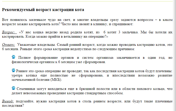 И кастрация в возрасте 3-х месяцев оправдана американскими учёными от ветеринарии, как не приносящая вред здоровью животного!