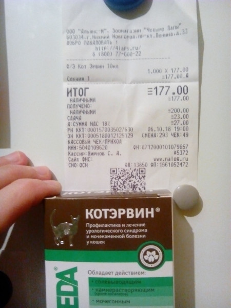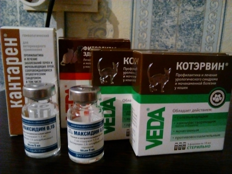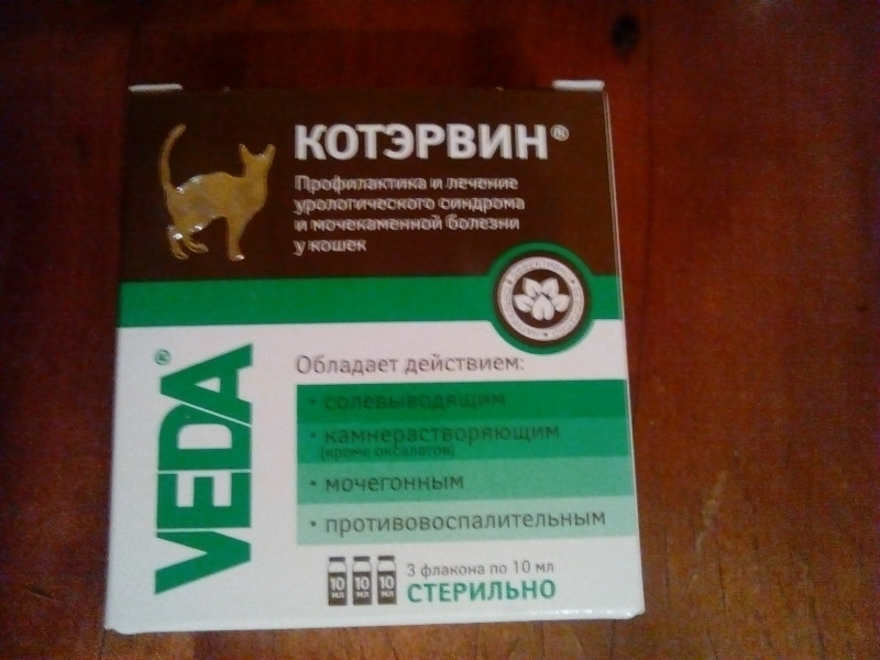 В клинике Скрипу сделали узи мочевого пузыря: диагностирован наполненный мочевой пузырь и много песка в моче. Врач сказала, что произошла закупорка уретры. Нужна катетеризация. Делали без седирования чтобы не нагружать почки. Уретра была плотно забита песком. В результате нескольких попыток вставить трубочку удалось сцедить мочу и вышел сгусток песка. Перед поездкой в клинику был куплен котэрвин о чем я сказала врачу. Врач назначила Скрипу лечение и котэрвин по умолчанию. Из сцеженной мочи взяли пробу и отвезли на анализ.